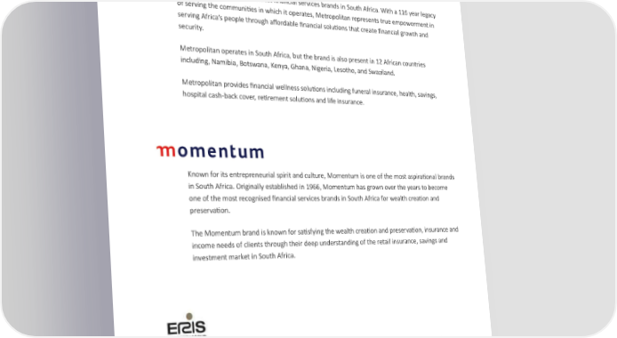 Metropolitan is one of the oldest financial services brands in South Africa. With a 116 year legacy of serving the communities in which it operates, Metropolitan represents true empowerment in serving Africa’s people through affordable financial solutions that create financial growth and security. Metropolitan operates in South Africa, but the brand is also present in 12 African countries including, Namibia, Botswana, Kenya, Ghana, Nigeria, Lesotho, and Swaziland. Metropolitan provides financial wellness solutions including funeral insurance, health, savings, hospital cash-back cover, retirement solutions and life insurance. Known for its entrepreneurial spirit and culture, Momentum is one of the most aspirational brands in South Africa. Originally established in 1966, Momentum has grown over the years to become one of the most recognised financial services brands in South Africa for wealth creation and preservation. The Momentum brand is known for satisfying the wealth creation and preservation, insurance and income needs of clients through their deep understanding of the retail insurance, savings and investment market in South Africa. Eris properties is a property development and services group which provides a range of commercial property skills in the South African and sub-Saharan African markets. MMI Holdings became a major shareholder (52 percent) in Eris Properties in 2012. Eris also manages MMI’s property portfolio of R6.6 billion. Eris was formed in 2008 following the restructure of RMB Properties which had been in existence since 1987, and which was a prominent property development and property services company in the South African property industry. 19