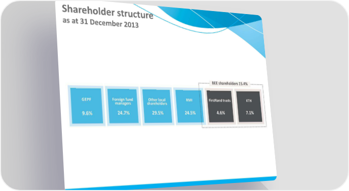 Shareholder structure as at 31 December 2013 MMI Holdings | Semi-Annual December 2013 Interim Report Page 34 Page 36