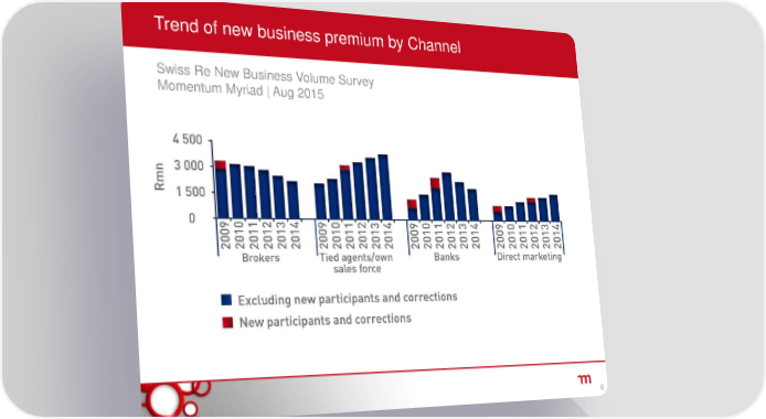 Momentum Strategic Review Page 5 Page 7Trend of new business premium by Channel Swiss Re New Business Volume Survey Momentum Myriad | Aug 2015 6