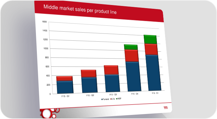 Middle market sales per product line 1600 1400 1200 1000 800 600 400 200 0 F15 - Q1 F15 - Q2 F15 - Q3 F15 - Q4 F16 - Q1 Funeral Life MSP