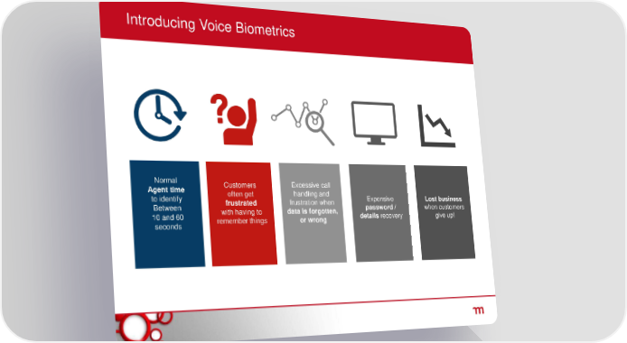 Introducing Voice Biometrics !!! Normal Customers Excessive call Agent time often get handling and to identify frustrated frustration when Expensive Lost business Between with having to data is forgotten, password / when customers 10 and 60 remember things or wrong details recovery give up! seconds